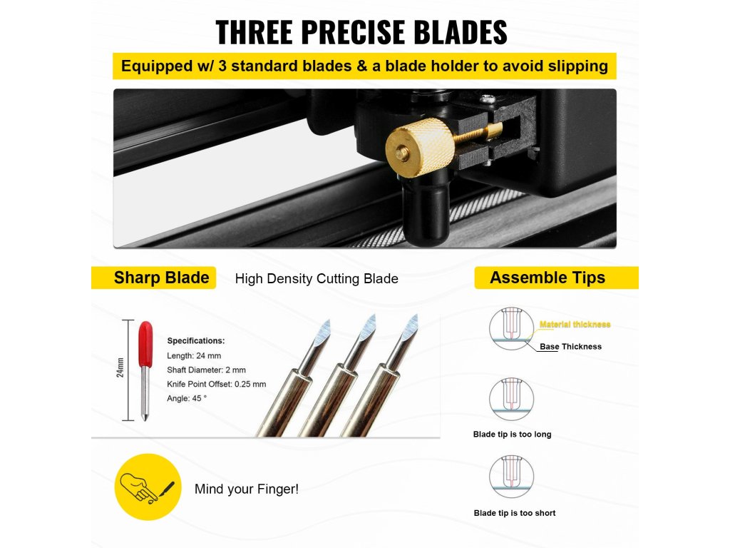 A vinilvágó gépünk által elfogadott, kidolgozott részletek előnyösek a pontos pozicionáláshoz. A precíziós skála, a 4 állítható dupla rugós nyomógörgő és az alumínium racsnis rúd segít a mérésben és megakadályozza a papír túlzott elmozdulását.