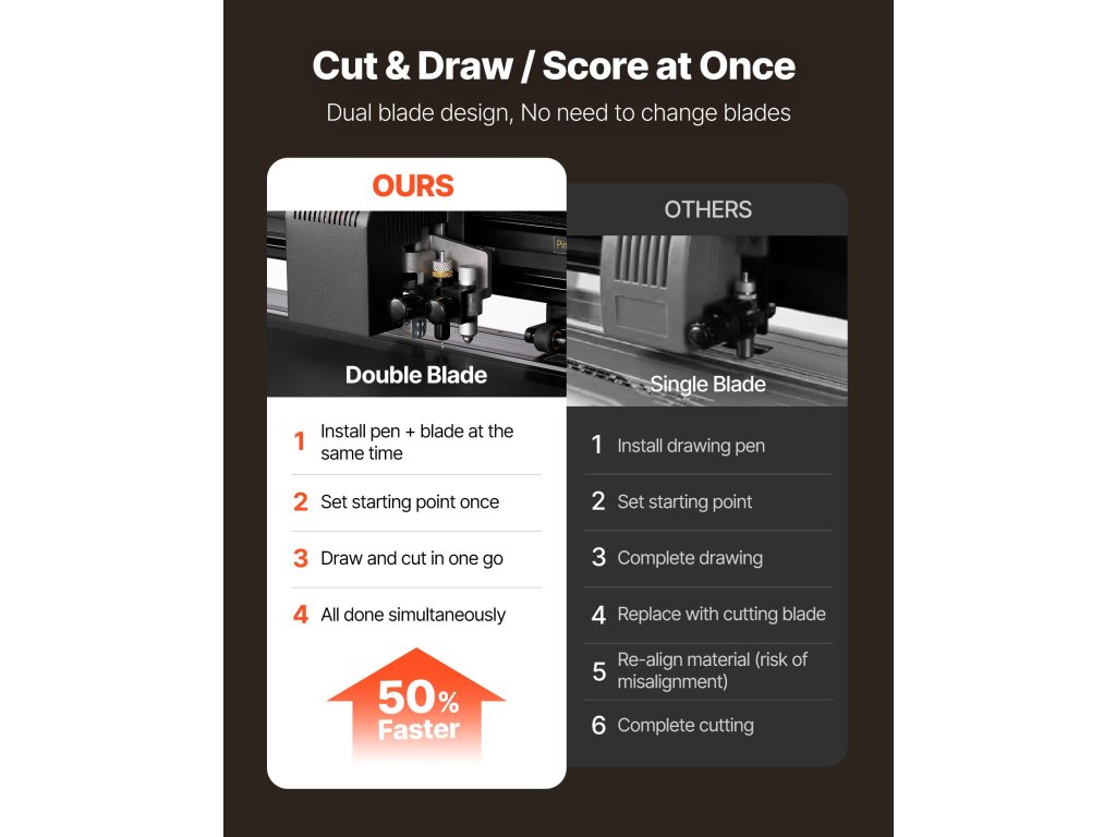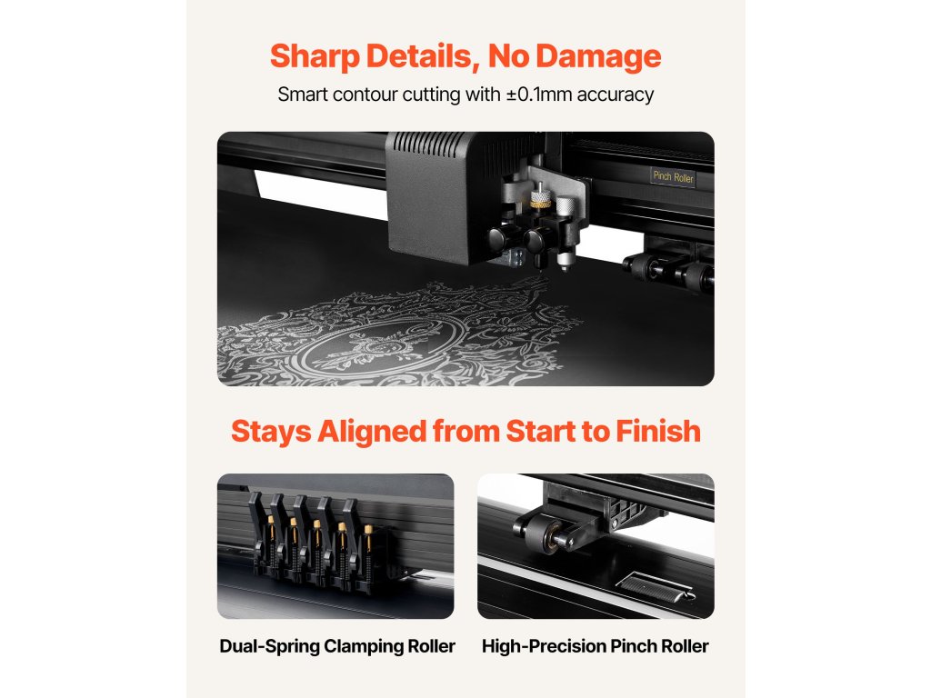 Ez a vinilvágógép két pengés kialakítással rendelkezik a pengék cseréje nélküli rajzoláshoz és vágáshoz/íráshoz. Kompatibilis a Windows és Mac rendszerekkel. Állítható erővel vág fóliát vagy tekercset akár 1 mm vastagságig. a ±0,1 mm-es pontosság és a kontúrérzékelés stabil, részletes vágást biztosít - kezdőknek is könnyű.