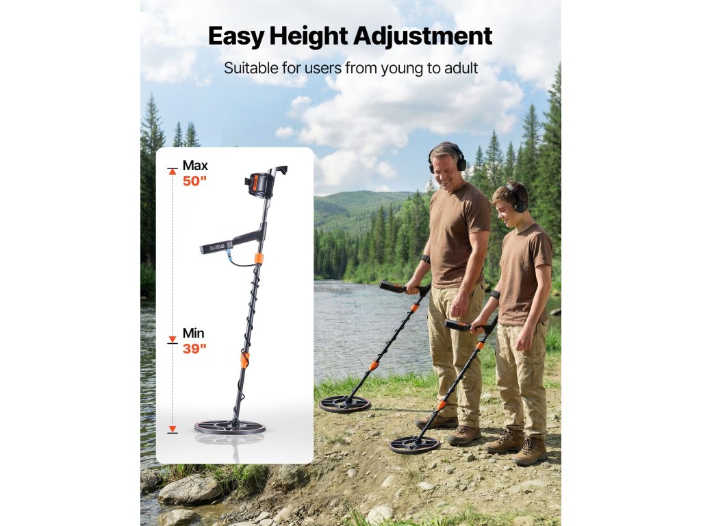 Fémdetektorunk IP68-as teljes test vízálló védelemmel, 7,2 kHz-es stabil működési frekvenciával és 12 hüvelykes érzékelési mélységgel rendelkezik, így segít Önnek pontosan megtalálni a célpontokat a talajban, homokban vagy fűben. A 39-50 hüvelykes állítható fogantyú különböző magasságokhoz igazítható a kényelmes fogás és a kezdők számára is alkalmas irányítás érdekében.