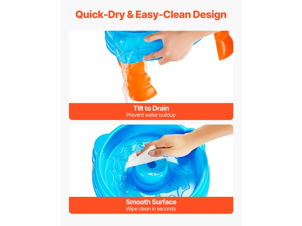 Egyszerűen döntse meg a víztáblát, hogy a víz lefolyjon, így megakadályozza a víz összegyűlését és szárazon tartja a felületet. A sima felület gyorsan letörölhető, így minden játék után gondtalan karbantartást biztosít.