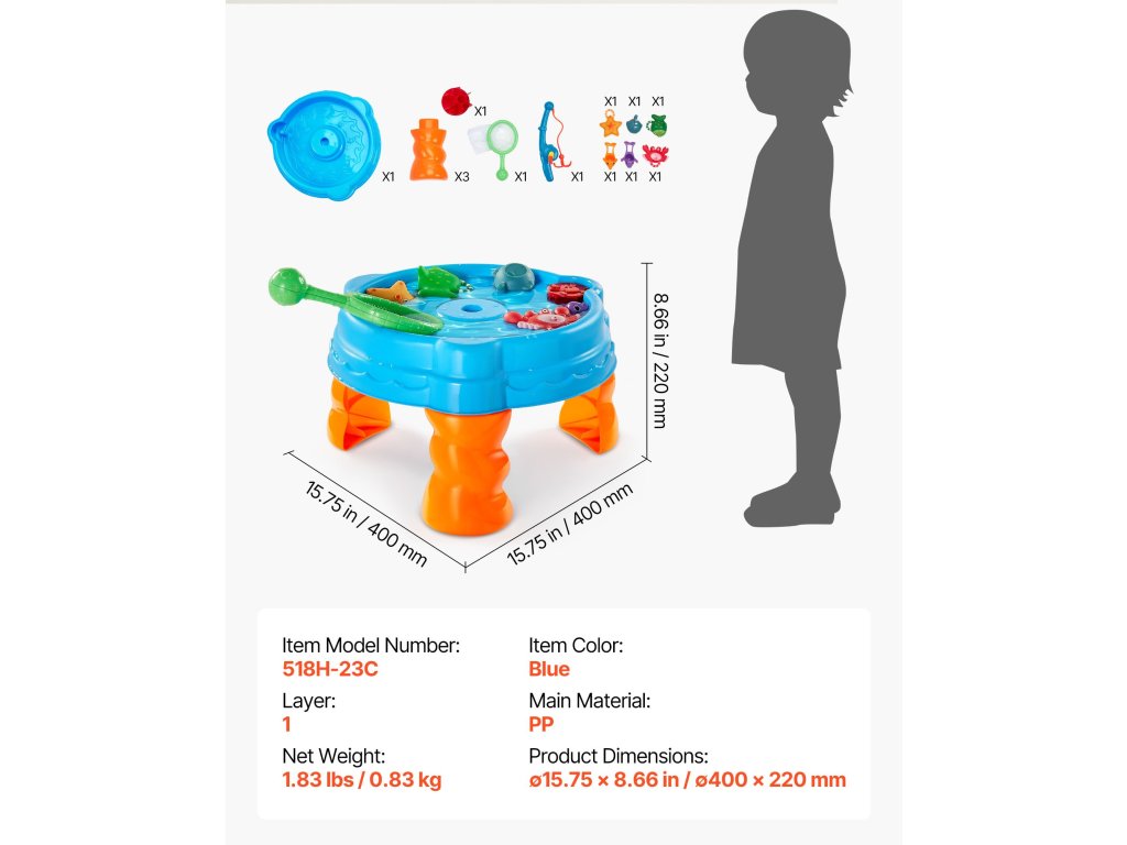 A 3 éves és annál idősebb gyerekeknek szánt vízi asztalunk 9 tartozékot tartalmaz az izgalmas horgászkalandokhoz és a gazdagabb játékélményekhez. Úgy terveztük, hogy segítse a gyermekek játékon keresztüli fejlődését, inspirálja a kreativitásukat, ösztönzi az érzékszervi felfedezést, serkenti a szociális interakciót és elősegíti a motoros készségek fejlődését.
