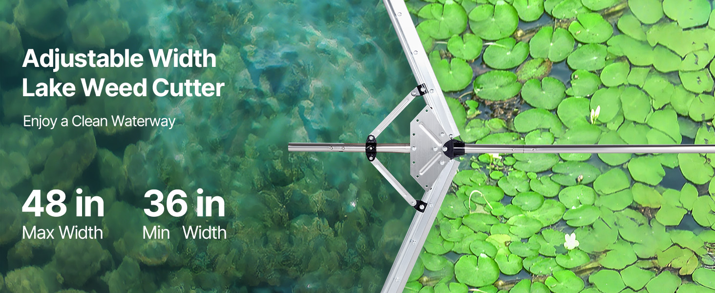 A gyomirtónk tartós, rozsdamentes eszköz, 2 állítható vágási szélességgel (max. 48 hüvelyk, min. 36 hüvelyk), tartós acélkésekkel, rozsdamentes acél fogantyúval és 30 láb hosszú kötéllel. Könnyen használható és tárolható, eltávolítja a tavirózsákat, denevéreket és más növényeket, hogy helyreállítsa a víz szépségét és egészségét.