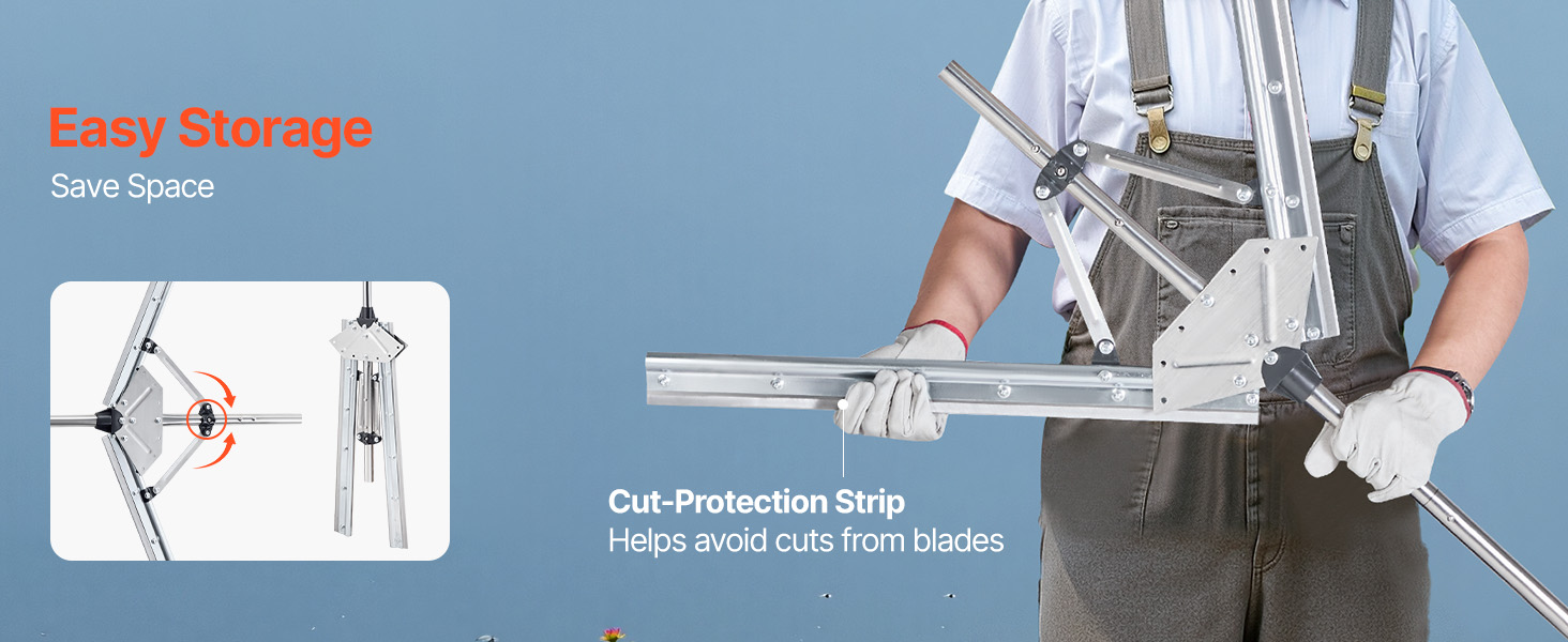 Ez a nádvágó kompakt kialakítású, könnyen összecsukható és tárolható a garázsban vagy a fészerben anélkül, hogy sok helyet foglalna. Védőcsíkkal rendelkezik, amely megakadályozza a vágásokat és védi a pengéket, így biztosítva a biztonságos tárolást.
