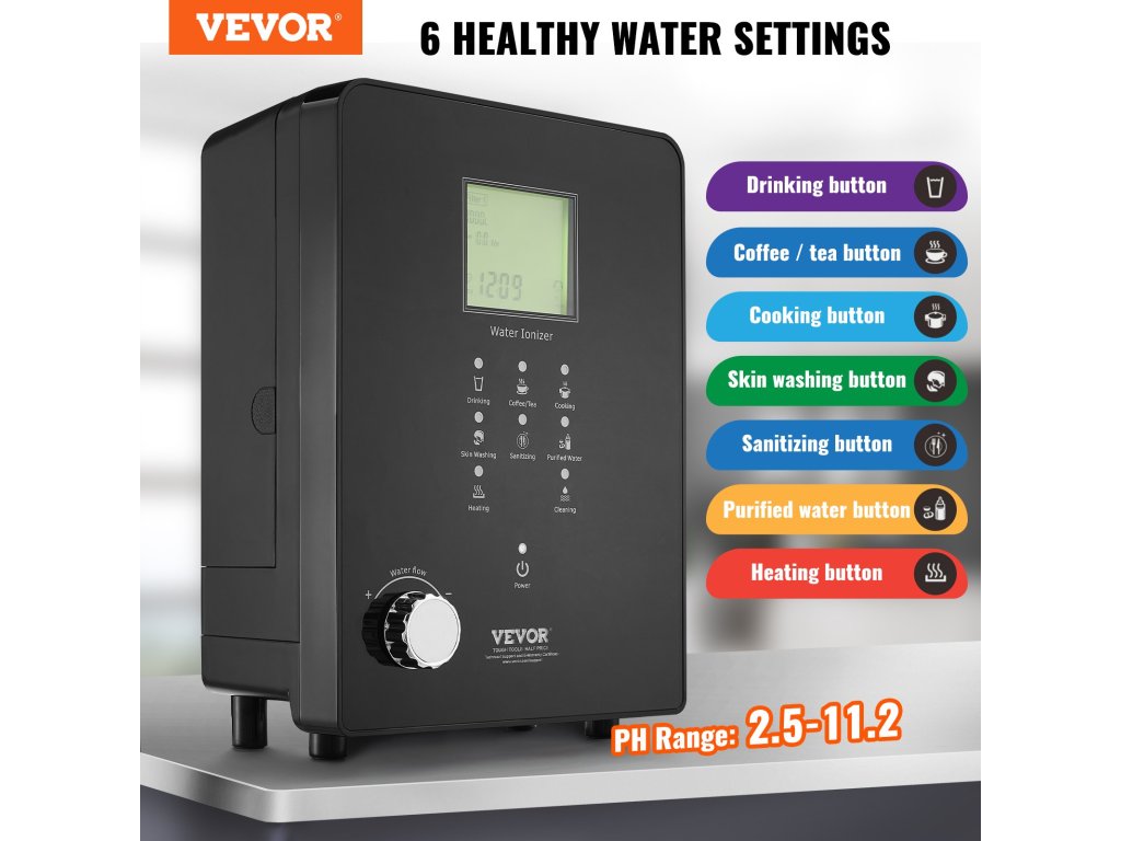 Különböző típusú egészséges vizet tud előállítani, beleértve a lúgos vizet, a tisztított vizet és a savas vizet. Otthoni szűrőrendszerünk a közönséges csapvizet elektrolízises vízzé alakítja, amely segít szabályozni a szervezet pH-értékét, fokozza az energiát, pótolja az alapvető ásványi anyagokat és elektrolitokat.
