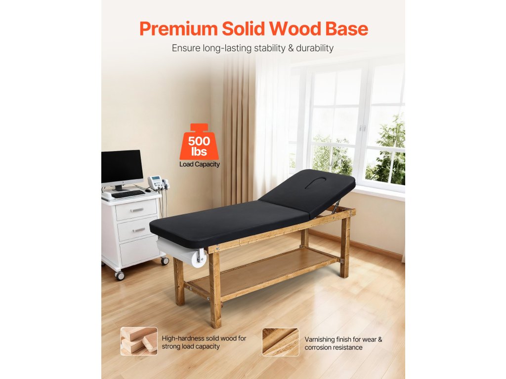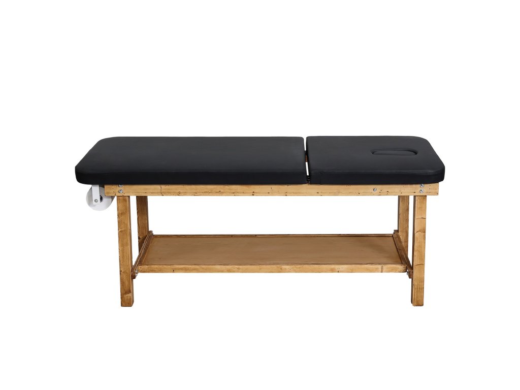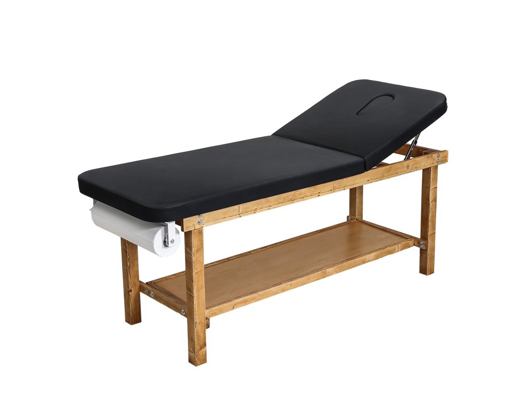 Vizsgálóasztal fa vázzal, állítható háttámlával és polccal