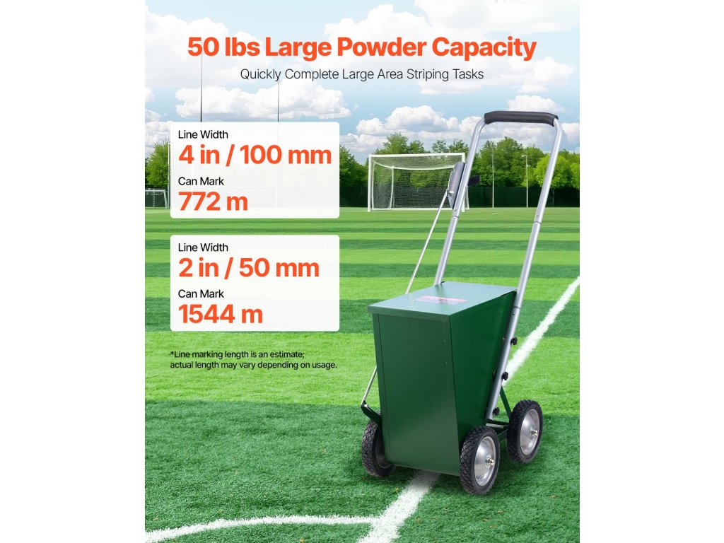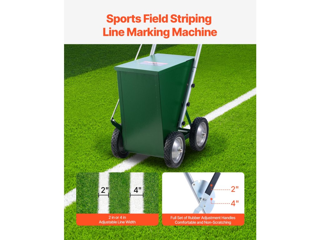 Az állítható fogantyúval ellátott terepjelzővel könnyedén beállíthatja a vonalszélességet 2 hüvelyk vagy 4 hüvelyk szélességre, így rugalmasan megfelel a különböző felületek és projektek egyedi igényeinek.