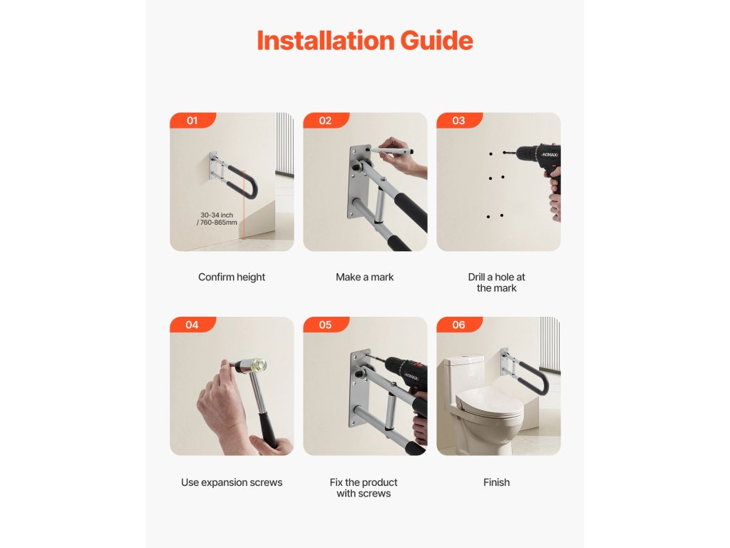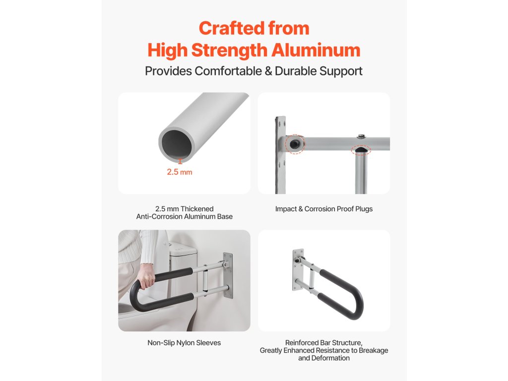 A WC kapaszkodó stabil támaszt nyújt, és lehetővé teszi, hogy biztonságosan és stabilan üljön vagy álljon. A vastag falú cső és a csúszásmentes nejlonhüvelyek biztosítják a problémamentes és biztonságos használatot. A nagy szilárdságú fémből készült, kiterjesztett támasztási tartományú kapaszkodó tartós támaszt és nagyobb kényelmet biztosít.