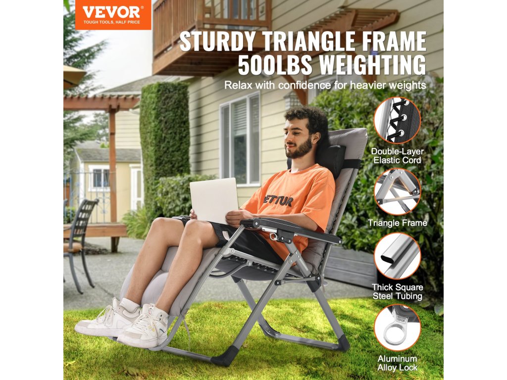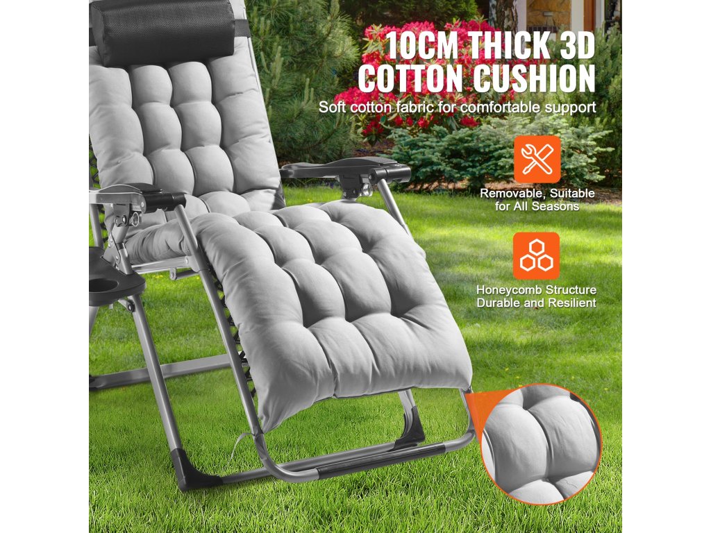Ez a zéró gravitációs fekvőhely 26" méretű, és meghosszabbított karfákkal rendelkezik a stabil támasztás érdekében, valamint nagyméretű, csúszásmentes lábpárnákkal, amelyek puhák és nem irritálnak. Teljes kikapcsolódást biztosít a testnek és a léleknek egyaránt.