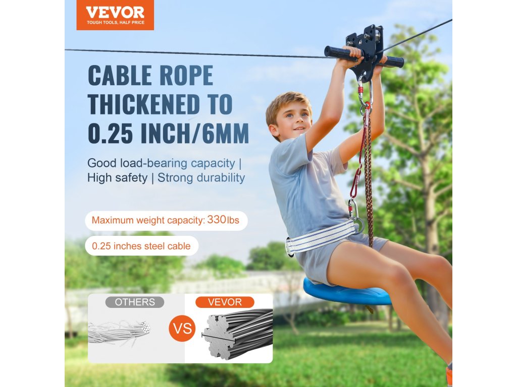 Ez a gyermek kötélpálya készlet kiváló minőségű rozsdamentes acélból készült és precízen megmunkált. Felnőttek és gyermekek számára egyaránt alkalmasak, és végtelen szabadtéri szórakozást nyújtanak.