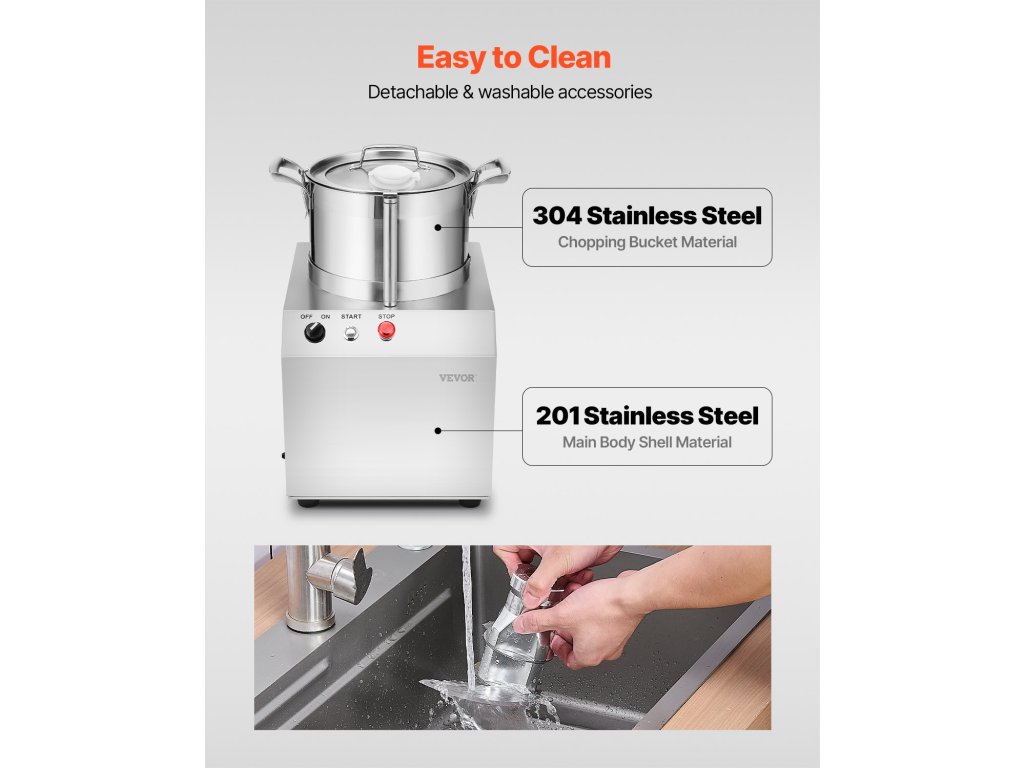 Élelmiszer-feldolgozónk teljesen rozsdamentes acélból készült, könnyen eltávolítható és mosható alkatrészekkel rendelkezik a könnyed karbantartás érdekében. A felhasznált anyagok minőségében megbízhat, hogy az ételek biztonságban és ízletesek maradjanak.