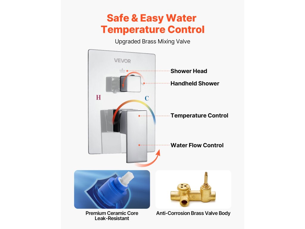 Kétfunkciós zuhanyrendszer-készletünk eső- és kézi zuhanyozási lehetőséget is kínál, és még alacsony vízszint esetén is nagynyomású vízsugarat biztosít, frissítő és pihentető zuhanyozási élményt nyújtva.