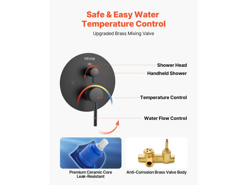 Kétfunkciós zuhanyrendszer-készletünk eső- és kézi zuhanyozási lehetőséget is kínál, és még alacsony vízszint esetén is nagynyomású vízsugarat biztosít, frissítő és pihentető zuhanyozási élményt nyújtva.