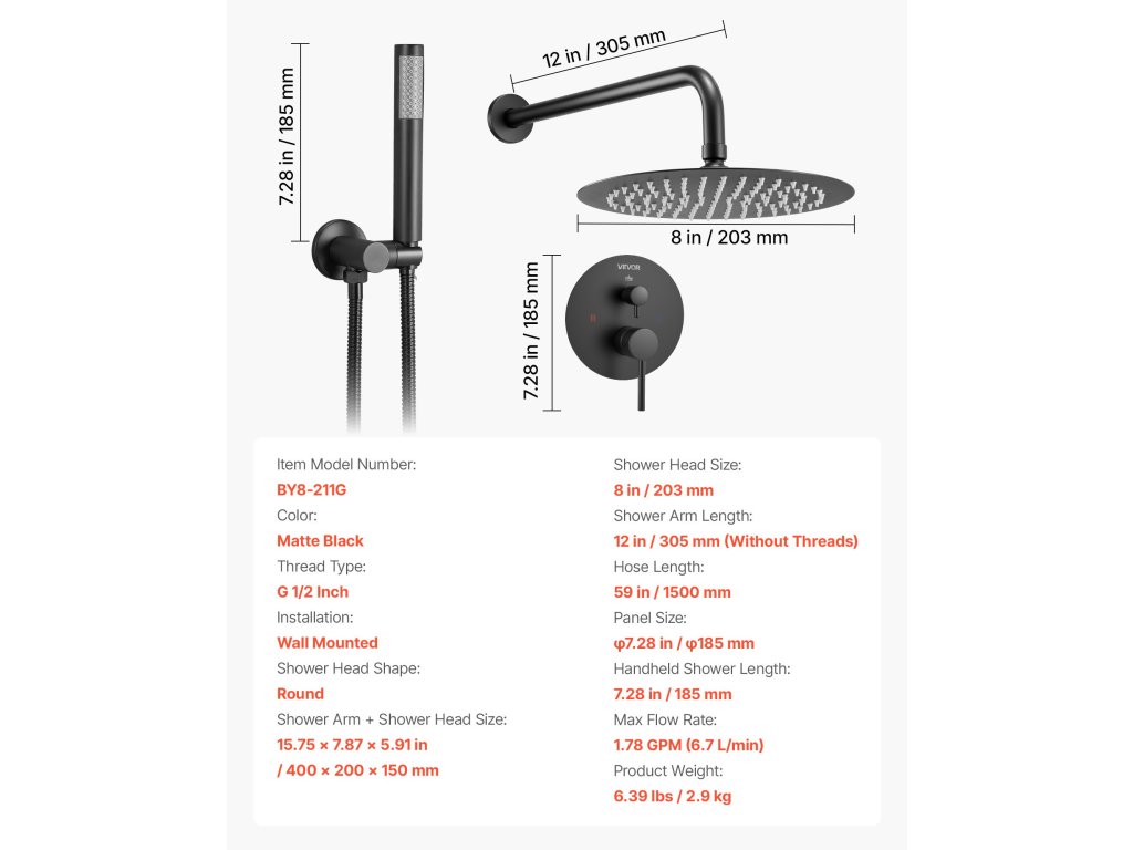 | Veľkosť sprchovej hlavice | 8 palcov/203 mm |