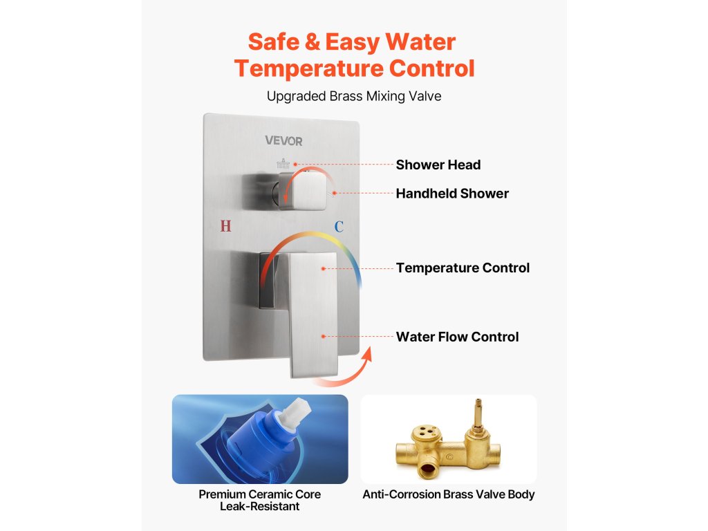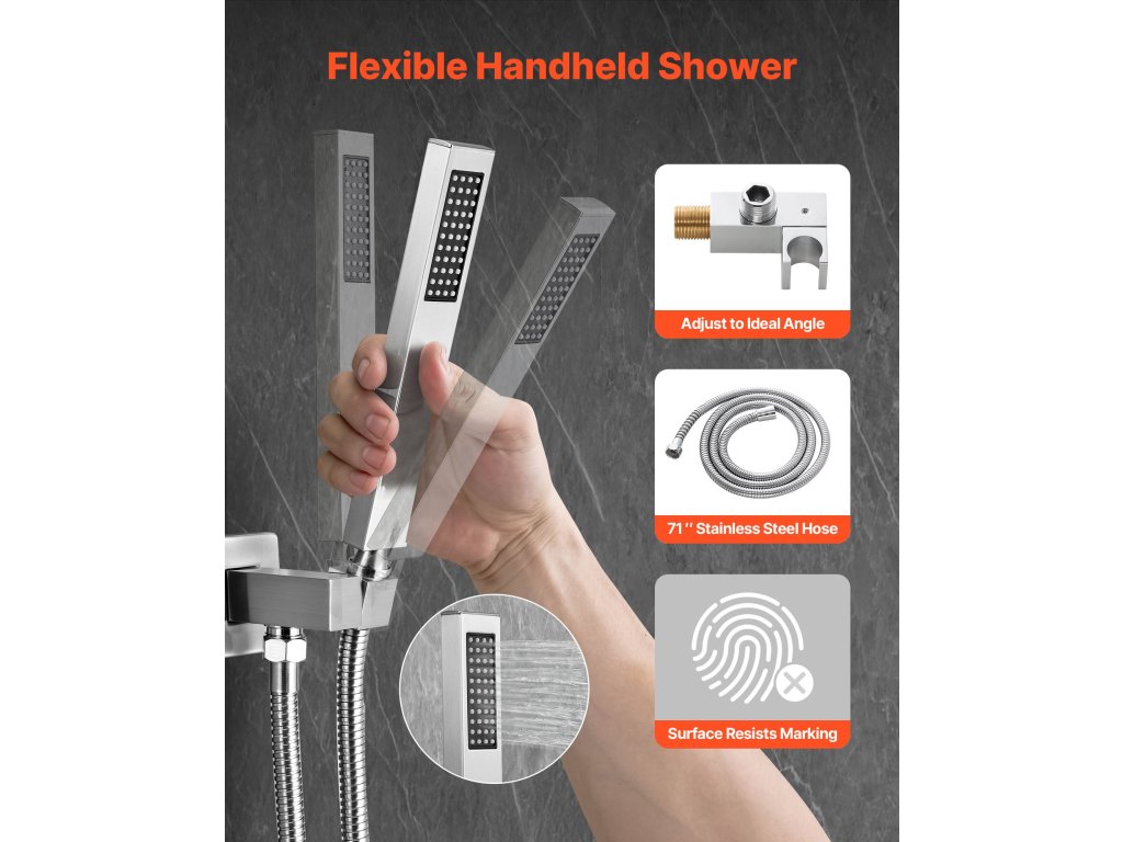 Kétfunkciós zuhanyrendszer-készletünk eső- és kézi zuhanyozási lehetőséget is kínál, és még alacsony vízszint esetén is nagynyomású vízsugarat biztosít, frissítő és pihentető zuhanyozási élményt nyújtva.