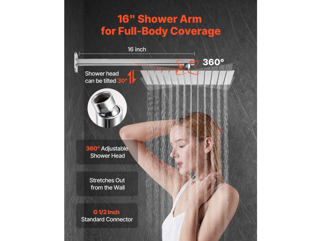 | Dĺžka sprchového ramena | 16 in/406 mm |