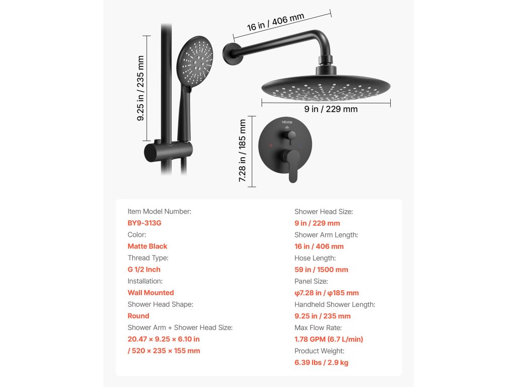 | Veľkosť sprchovej hlavice | 9 palcov/229 mm |