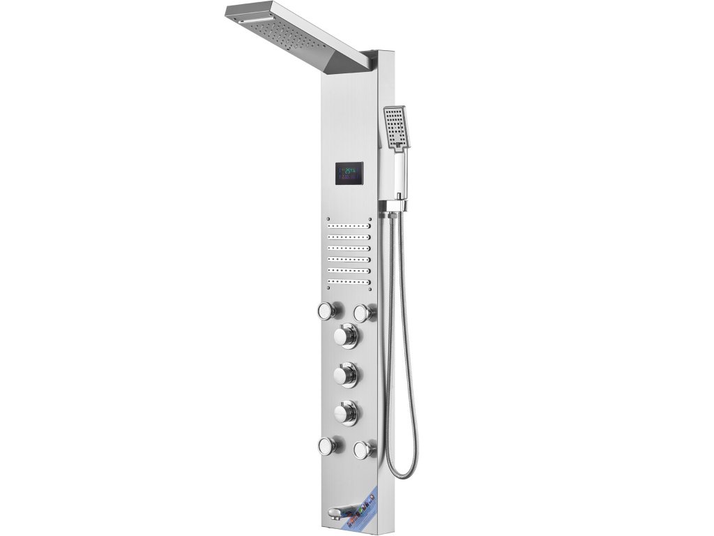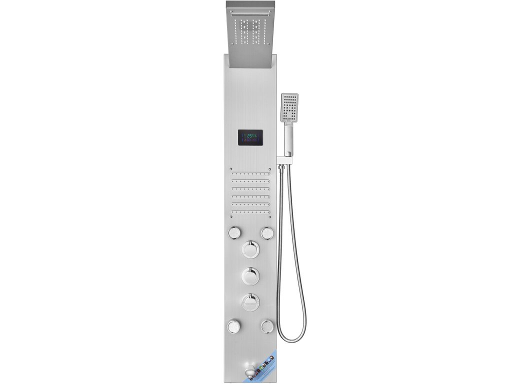 Zuhanypanel 6 üzemmóddal, jég, 5 fúvóka, eső/vízesés, rozsdamentes acél