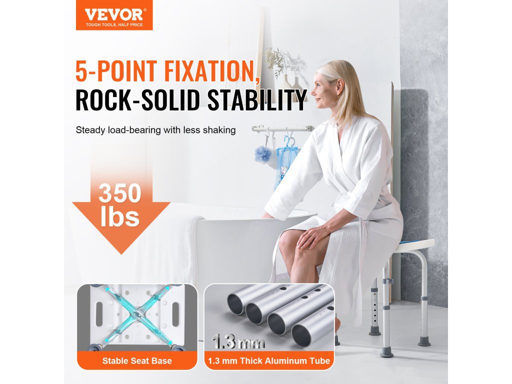 Zuhanyszék, állítható magasságú, csúszásgátló, teherbírás 158,8 kg