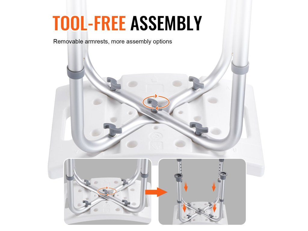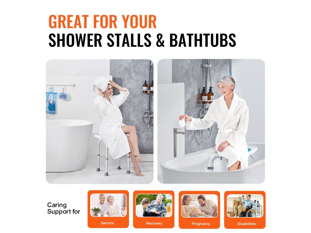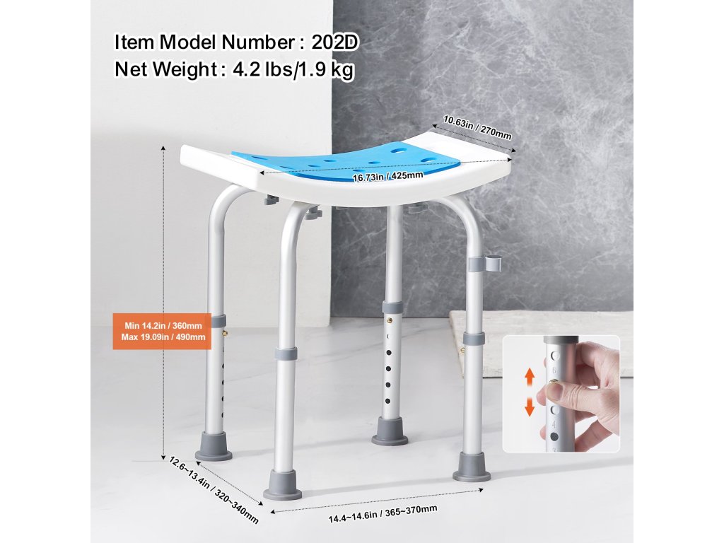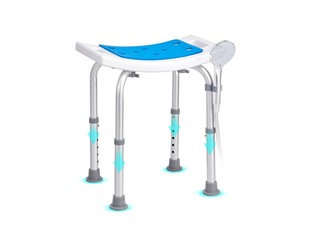 A többszintű magasságállításnak köszönhetően fürdőszékünk különböző magasságú embereknek is megfelel. A gombot a könnyű beállításhoz terveztük. A beépített fogantyúk nagyobb stabilitást biztosítanak Önnek, amikor zuhanyzás közben ráül. Az ívelt ülés a fenékhez igazodik, nagyobb kényelmet biztosítva.