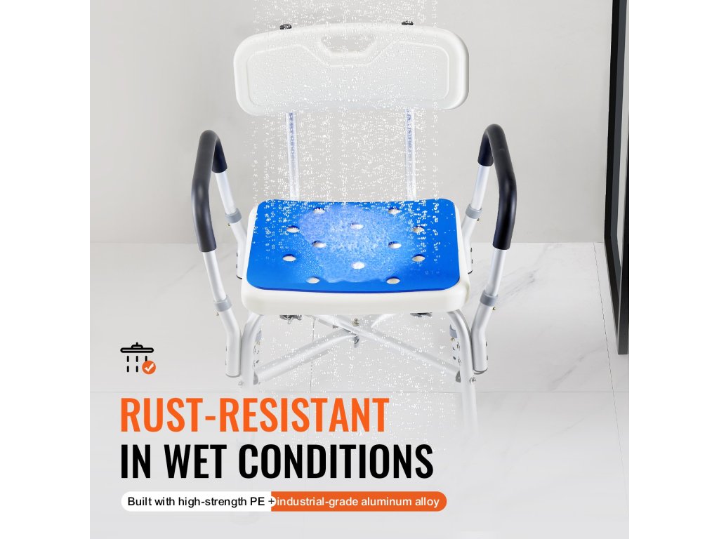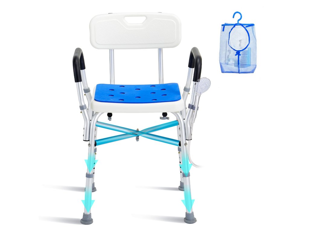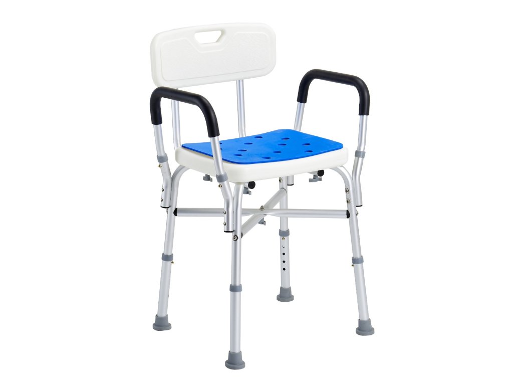 Zuhanyszék 180 kg, állítható magasságú, párnázott karfákkal