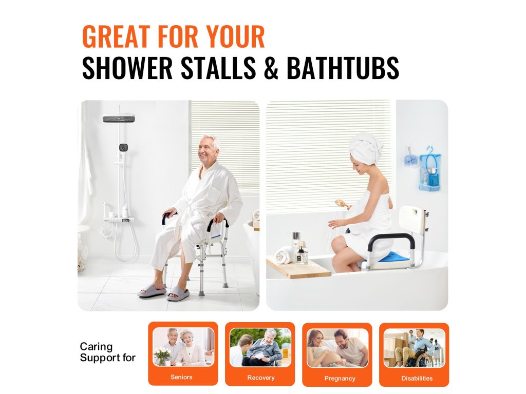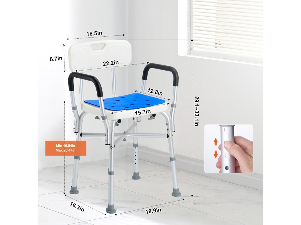 A többszintű magasságállításnak köszönhetően fürdőszékünk alkalmazkodik a különböző magasságú emberekhez. A nyomógombot a könnyű beállításhoz tervezték. A szék típusát az Ön igényeinek megfelelően választhatja ki, mivel a karfa és a háttámla levehető, így különböző rögzítési módokat tesz lehetővé.