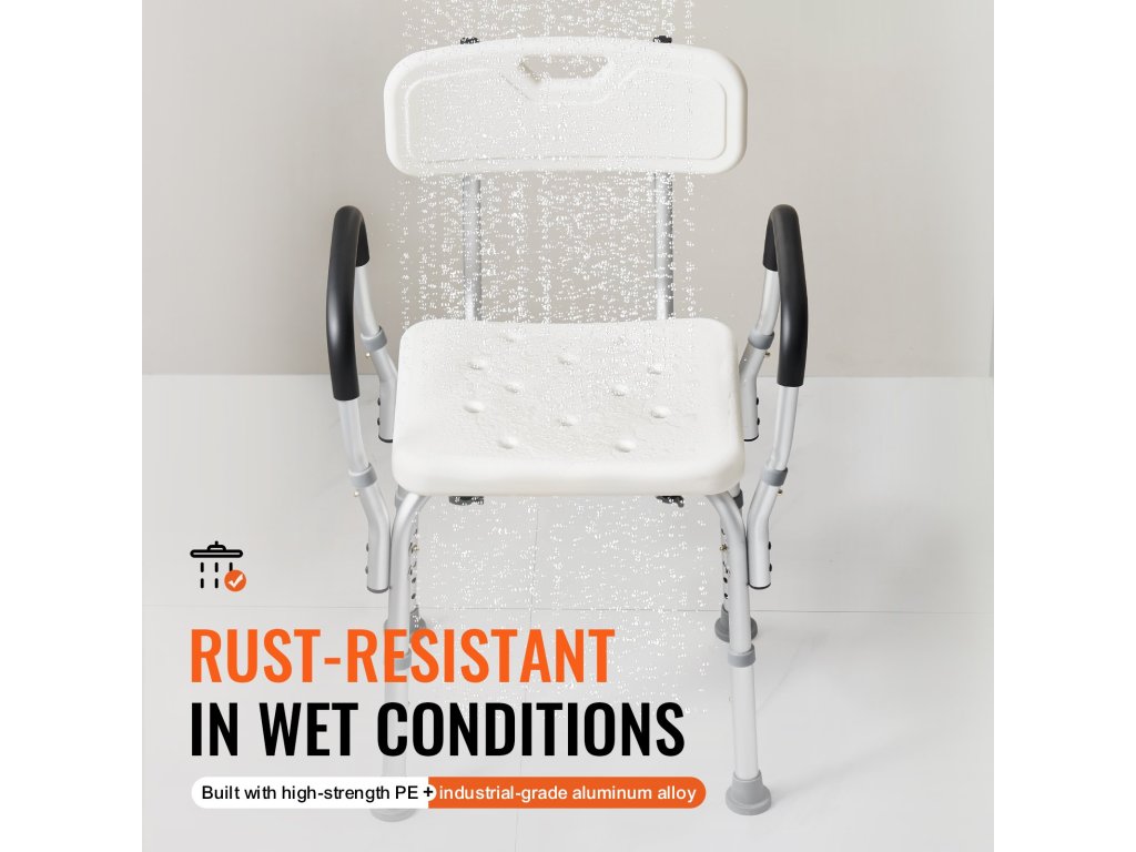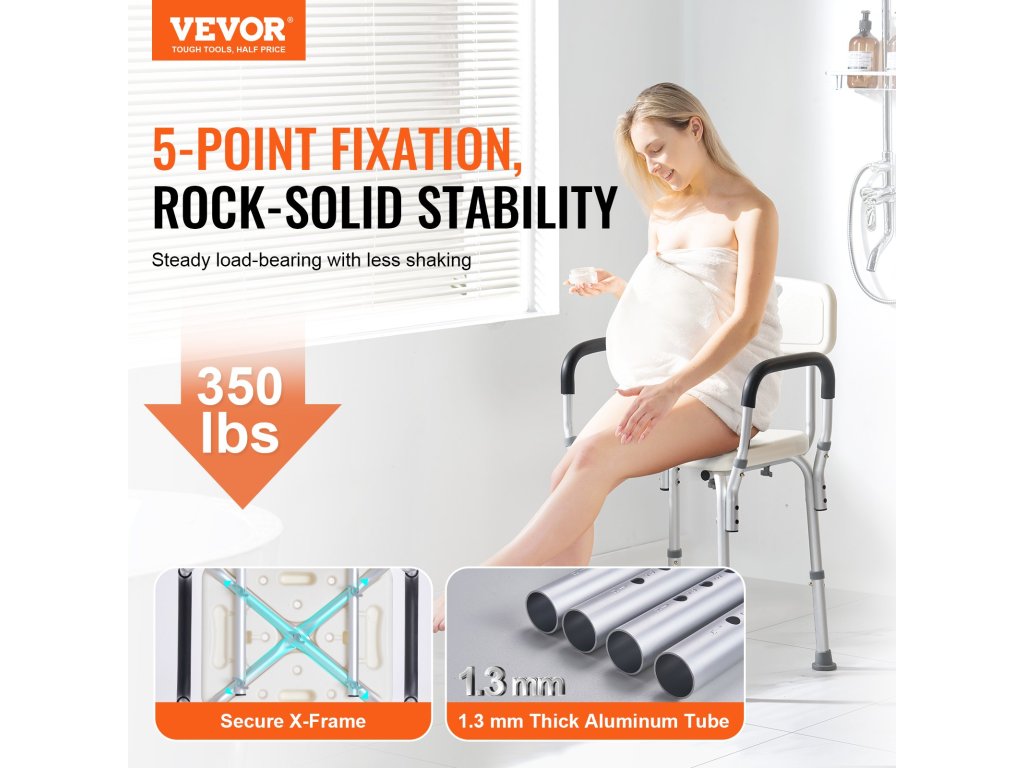 Zuhanyszék háttámlával, csúszásgátlóval, teherbírás 158,8 kg