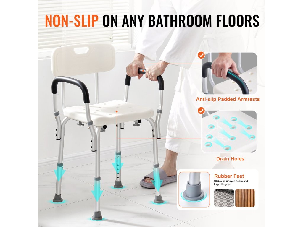 Élvezze a biztonságos ülést a fürdőszobában, a zuhanyzóban vagy a fürdőkádban. Zuhanyszékünk csúszásmentes lábpárnái növelik a súrlódást és a padlóval való érintkezést, csökkentve a hosszú ideig tartó állás vagy a fürdés közbeni elcsúszás kockázatát. A szivárgásmentes lyukaknak köszönhetően jobb lesz a vízelvezető hatás.