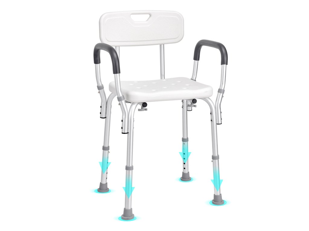 A többszintű magasságállításnak köszönhetően fürdőszékünk különböző magasságú embereknek is megfelel. A gombot a könnyű beállításhoz tervezték. A szék típusát az Ön igényeinek megfelelően választhatja ki, mivel mind a karfák, mind a háttámla levehető, így többféle rögzítési módot tesz lehetővé.