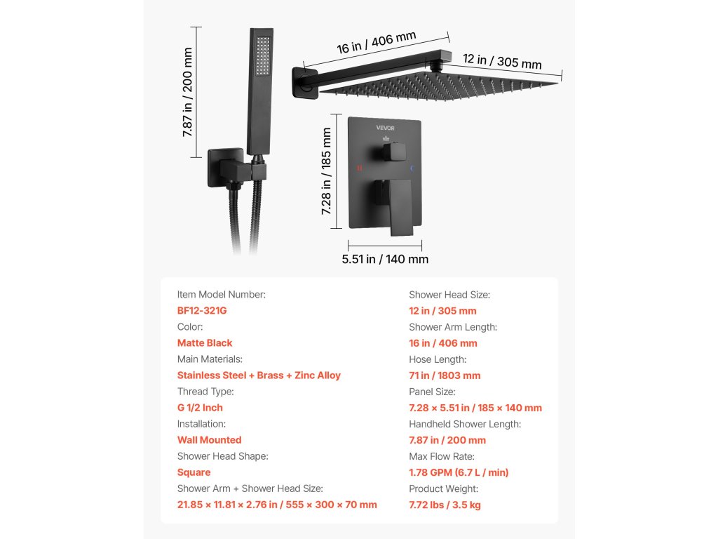| Veľkosť sprchovej hlavice | 12 palcov/305 mm |