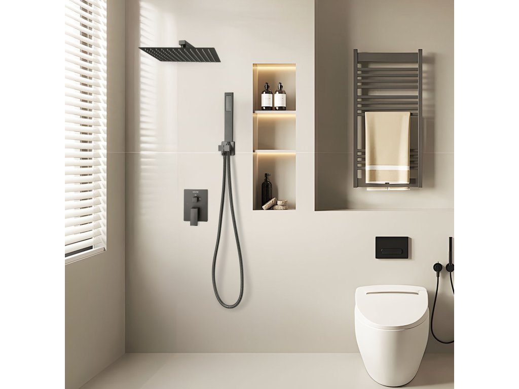 Kétfunkciós zuhanyrendszer-készletünk eső- és kézi zuhanyozási lehetőséget is kínál, és még alacsony vízszint esetén is nagynyomású vízsugarat biztosít, frissítő és pihentető zuhanyozási élményt nyújtva.