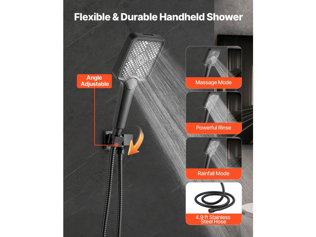 Ennél az esőzuhany-rendszernél a kézi sugár bezárás után automatikusan visszatér zuhanyzási üzemmódba, így megakadályozza a véletlen permetezést a következő használat során.