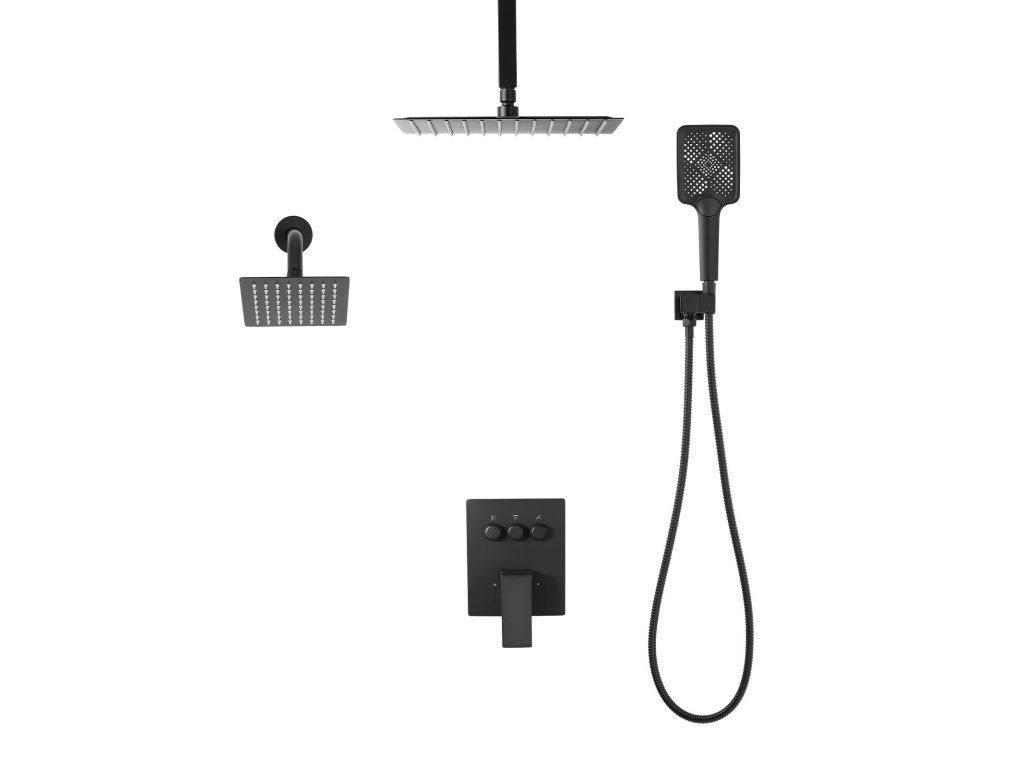 Zuhanyszett mennyezetre 305 mm, falra 152 mm, 4 az 1-ben kézi zuhanyfejjel, fekete
