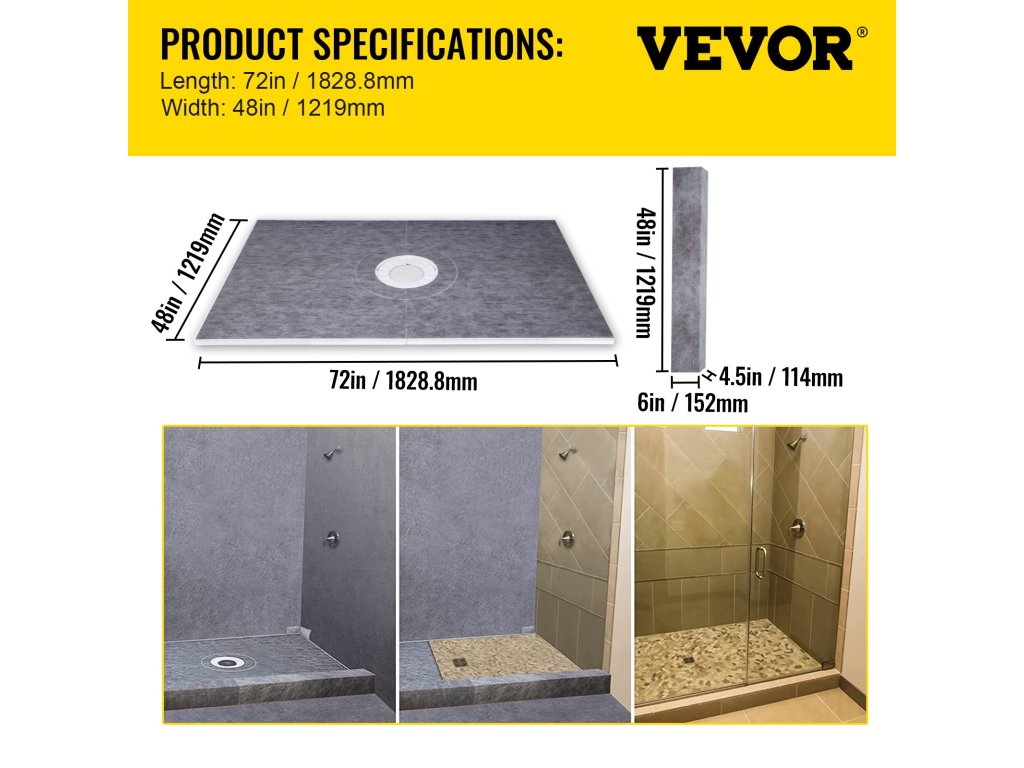 A nagy sűrűségű habszivacs zuhanytálca könnyű és mindössze 0,8'' vastag. Könnyedén elhelyezhető a csempék alatt, és kiváló vízáteresztő tulajdonságokkal rendelkezik. A tálcát az igényeinek megfelelően ki is vághatja.