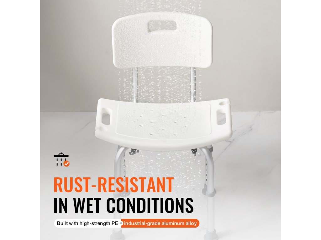 Zuhanyzószék háttámlával, állítható magasságú, teherbírás 158,8 kg