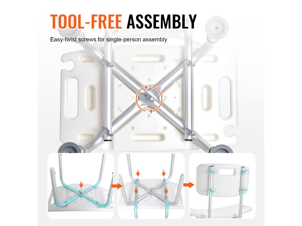 A többszintű magasságállításnak köszönhetően fürdőszékünk különböző magasságú embereknek is megfelel. A gombot a könnyű beállításhoz terveztük. A beépített fogantyúk nagyobb stabilitást biztosítanak Önnek, amikor zuhanyzás közben ráül. Az ívelt ülés a fenékhez igazodik, nagyobb kényelmet biztosítva.